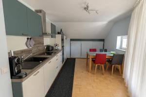 Apartmán Stadthaus Seeblick E75 poskytuje 2 ložnice, 2 koupelny, ložní prádlo, ručníky, kabelovou TV s plochou obrazovkou, jídelní kout a plně vybavenou kuchyň. Z balkonu ubytování ubytování se otevírá výhled na hory. V koupelně ubytování Stadthaus Seeblick E75 najdete sprchu, fén a bezplatné toaletní potřeby.