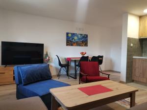 Featuring a private entrance, this apartment consists of 1 living room, 2 separate bedrooms and 1 bathroom with a shower and a hairdryer. Guests will find a stovetop, a refrigerator, kitchenware and a toaster in the well-equipped kitchen. The apartment also offers a barbecue. This apartment features soundproof walls, flat-screen TV with streaming services, garden views, as well as fruit for guests. The unit offers 4 beds.