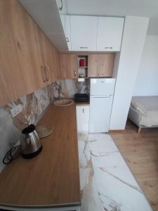 - Small kitchen area,
