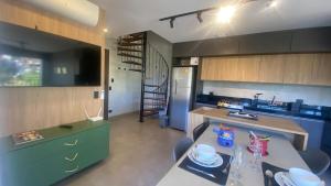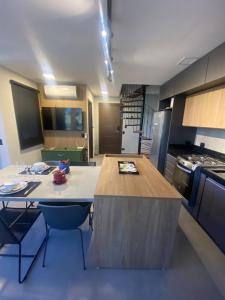 Klimatizovaný apartmán Star Green 213 - Linda vista e conforto no coração do Capivari má 1 ložnici, obývací prostor, plně vybavenou kuchyň s lednicí a 1 koupelnu. Apartmán má také koupelnu.