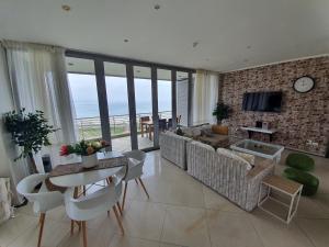 The spacious apartment with a balcony and sea views has 3 bedrooms, a living room, a TV, an equipped kitchen with a dishwasher and an oven, and 2 bathrooms with a bath. Towels and bed linen are available at the property. Stay at The Point - Magnificent Magical Marvel includes an outdoor dining area.