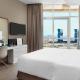 This modern suite offers city view, a separate living area and a fully equipped kitchen.