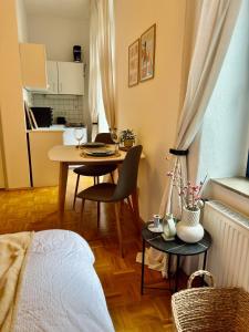 Zimmer: 1This apartment is comprised of a kitchenette, a seating area, 1 separate bedroom and 1 bathroom with a shower and a hairdryer. In the fully equipped kitchenette, guests will find a stovetop, a refrigerator, kitchenware and an oven. Featuring a balcony with garden views, this apartment also offers a washing machine and a flat-screen TV. The unit offers 1 bed.