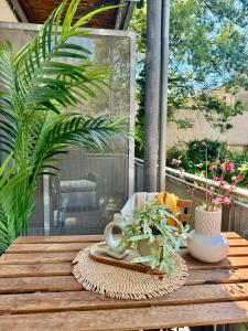 Diese Ferienwohnung ist versehen mit 1 Schlafzimmer, 1 Badezimmer, Bettwäsche, Handtüchern, einem Flachbild-TV, einem Essbereich, einer voll ausgestatteten Küchenzeile und einem Balkon mit Gartenblick.