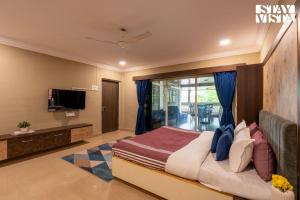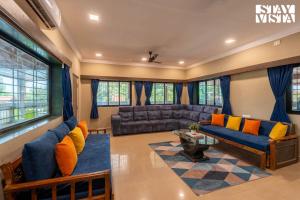 StayVista at The Blue Roof with Lawn & BBQ se nachází v destinaci Karjat a poskytuje venkovní bazén a ubytování s bezplatným Wi-Fi a výhledem do zahrady. Součástí vily StayVista at The Blue Roof with Lawn & BBQ je soukromý bazén, zahrada, bezplatné parkování a možnost vlastního stravování.