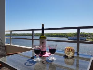 Pokoje: 1This apartment is comprised of 1 living room, 1 separate bedroom and 1 bathroom with a shower and a hairdryer. A kitchen equipped with a refrigerator, a microwave and a toaster is available for cooking and storing food. Featuring a balcony with lake views, this apartment also offers a coffee machine and a TV. V této ubytovací jednotce je k dispozici 3 postele.