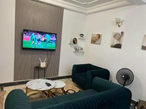 Diese Ferienwohnung mit 1 Schlafzimmer bietet den Gästen Flachbild-TV, eine Klimaanlage und ein Wohnzimmer.