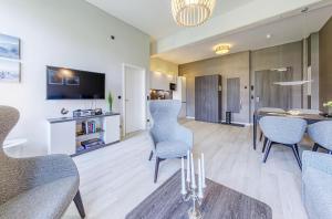 Diese Ferienwohnung besteht aus 1 Schlafzimmer, einem Wohnzimmer, einer voll ausgestatteten Küche mit einem Kühlschrank und einer Kaffeemaschine sowie 1 Badezimmer mit einer Dusche und einem Haartrockner. In dieser Ferienwohnung werden Handtücher und Bettwäsche angeboten.