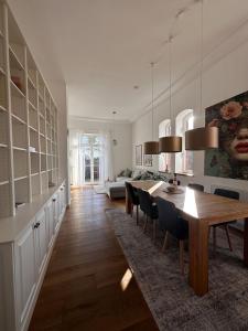 El apartamento cuenta con balcón y vistas a la ciudad, y tiene 3 dormitorios, una sala de estar, TV de pantalla plana, una cocina equipada con nevera y lavavajillas, y 2 baños con ducha. El apartamento Stilvolle Altbauwohnung mit Charme dispone de toallas y ropa de cama.