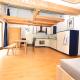 Das Apartment Stilvolle Dachwohnung für 4 im Thermenort Vals mit Balkon und Bergblick verfügt über 1 Schlafzimmer, ein Wohnzimmer, einen Flachbild-TV, eine gut ausgestattete Küche mit Kühlschrank und Geschirrspüler sowie 1 Badezimmer mit Dusche. In dieser Ferienwohnung werden Handtücher und Bettwäsche angeboten.
