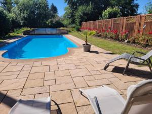 Gäste des Stilvolle Fewo Vogelnest, barrierefrei, Smart-TV, Parkplatz können im Außenpool schwimmen, wandern, Rad fahren oder im Garten mit Grillmöglichkeiten entspannen.