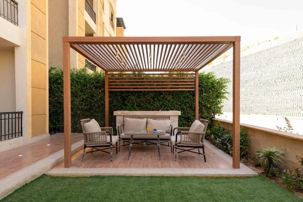 The apartment's kitchen is available for cooking and storing food. The spacious apartment offers air conditioning, a washing machine and garden views. The unit has 4 beds.