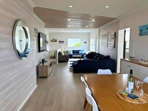 В этом доме для отпуска есть телевизор с плоским экраном, несколько спален (4), обеденная зона, полностью оборудованная кухня и несколько ванных комнат (3). Комплекты постельного белья и полотенец доступны для гостей Stones Throw to Beach & Chiton Surf Club. С террасы объект размещения открывается вид на море.