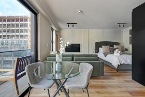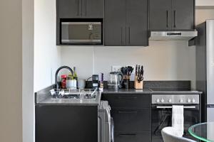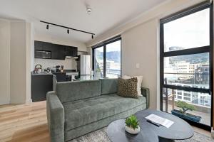 Die klimatisierte Ferienwohnung im Storm - Sky High 1 Bed Penthouse - City & Mountain Views bietet Zugang zu einem Balkon, 1 Schlafzimmer und eine voll ausgestattete Küche. Es gibt einen Flachbild-TV.
