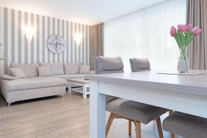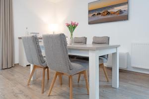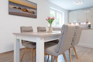 Apartmán Strandhäuser Lindenstraße Kelleglück zahrnuje 2 ložnice, plně vybavenou kuchyň s lednicí a myčkou a 1 koupelnu se sprchou. Koupelna v ubytování Strandhäuser Lindenstraße Kelleglück je zařízena vanou a fénem.