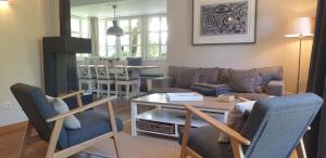 Featuring a private entrance, this holiday home also comprises 3 bedrooms, a seating area and 2 bathrooms with a shower and a hairdryer. Meals can be prepared in the well-fitted kitchen, which comes with a stovetop, a refrigerator, a dishwasher and kitchenware. Boasting a terrace, this holiday home also provides a washing machine, a coffee machine and a TV with cable channels. The unit offers 3 beds.