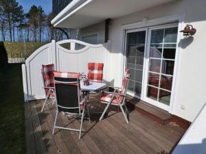 Die Unterkunft Strandresidenz Deichgraf 2 Prerow verfügt über 1 Schlafzimmer, 1 Badezimmer mit einem Haartrockner, ein Wohnzimmer und eine Küchenzeile mit einem Kühlschrank. In dieser Ferienwohnung werden Handtücher und Bettwäsche angeboten.