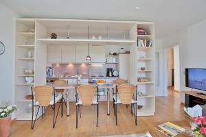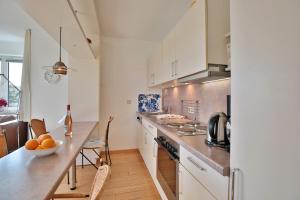 Dwupokojowy apartament Strandschlößchen Strandschlösschen Appartement 1 posiada kuchnię z lodówką i zmywarką oraz łazienkę z prysznicem, pralką i suszarką. W obiekcie do dyspozycji Gości jest telewizor oraz odtwarzacze: Blu-ray, DVD i CD.