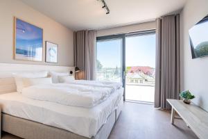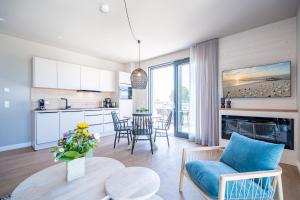 Apartmán má 1 ložnici, 1 koupelnu, ložní prádlo, ručníky, TV s plochou obrazovkou, kuchyňský kout s kompletním vybavením a terasu s výhledem na moře. V koupelně ubytování Strandterrasse, App B4 7 nechybí sprcha ani fén.