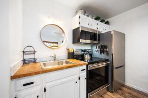 Tento prázdninový dům má 1 ložnici, kuchyňský kout s kompletním vybavením včetně lednice a trouby a 1 koupelnu s sprchou. V koupelně ubytování ubytování nechybí vana a toaletní potřeby zdarma. V ubytování Striking Queen Deluxe Studio w/Kitchenette #114 at Donner Lake Village jsou pro hosty připraveny ručníky a ložní prádlo.