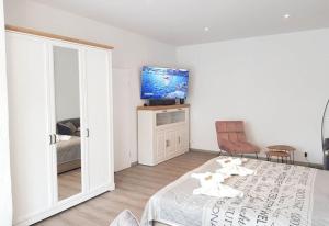 Rooms: 1The studio features a private bathroom, a washing machine, a private entrance, as well as a seating area with a flat-screen TV. The well-fitted kitchenette has a stovetop, a refrigerator, a dishwasher and kitchenware. The studio offers a tea and coffee maker, a wardrobe, as well as a balcony and an outdoor dining area. The unit provides 1 bed.