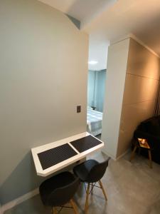 Апартаменты Studio - Embaré - Santos, frente ao mar располагают 1 спальней. Среди других удобств - гостиная, в которой есть телевизор с плоским экраном со спутниковыми каналами, мини-кухня с холодильником и духовка, а также ванная комната (1) с феном. Полотенца и постельное белье включены в стоимость проживания в объекте размещения.