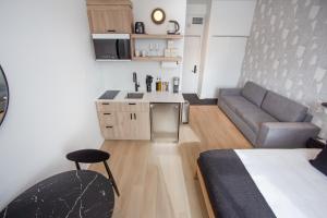 The studio offers air conditioning, a washing machine, as well as a private bathroom boasting a walk-in shower and a hairdryer. The well-equipped kitchenette has a stovetop, a refrigerator, kitchenware and a microwave. The studio provides a tea and coffee maker, a dining area, as well as a terrace and outdoor furniture. The unit has 2 beds.