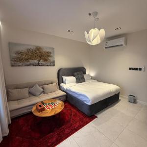 Klimatyzowany apartament Studio, overlooking sea Al-Rakah,self-check-in posiada sypialnię i telewizor.