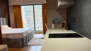 W obiekcie zapewniono część wypoczynkową z telewizorem z płaskim ekranem, aneks kuchenny z pełnym wyposażeniem, w tym płytą kuchenną, a także prywatną łazienkę z prysznicem oraz bezpłatnym zestawem kosmetyków. Z patio w obiekcie Studio Apartment at Galaxy Blue Sapphire Mall roztacza się widok na miasto. W obiekcie Studio Apartment at Galaxy Blue Sapphire Mall pościel i ręczniki dostępne są za dodatkową opłatą.