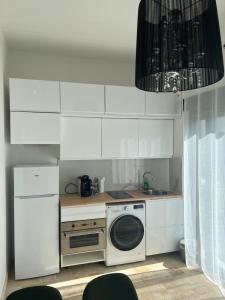 The apartment's kitchen, which features a refrigerator and a microwave, is available for cooking and storing food. The apartment comes with a flat-screen TV, a washing machine, a tea and coffee maker, as well as heating. The unit offers 2 beds.