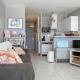 Die Küche im Studio au pied de la plage, vue mer Les Sables - 4 personnes bietet Kühlschrank, Spülmaschine, Mikrowelle und Kaffeemaschine.