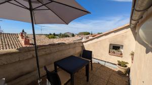 Studio avec balcon se může pochlubit výhledem na město a nabízí ubytování s balkonem a kávovarem. Výstaviště Nîmes se nachází přibližně 26 km odtud. Avignon vlakové nádraží TGV se nachází 40 km od tohoto apartmánu a Výstaviště Avignon 48 km.