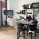 Apartmán má TV. Apartmán má také kuchyň s kompletním vybavením včetně lednice a mikrovlnné trouby, jídelní část a koupelnu.