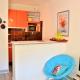 Cet appartement au Studio Cabine avec Terrasse et Parking - Proche Centre et Plages à Cavalaire-sur-Mer - FR-1-226B-31 comprend un salon et une cuisine entièrement équipée avec réfrigérateur et micro-ondes. Une télévision est disponible.