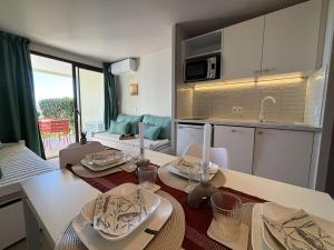Tento apartmán s výhledem na moře má kuchyň s dobrým vybavením včetně lednice, myčky nádobí a mikrovlnné trouby a koupelnu.