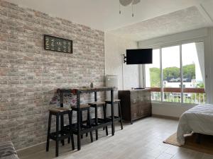 Apartament Studio centre-ville a quelque pas de la plage - WIFI wyposażono w telewizor z płaskim ekranem. Kuchnia w Studio centre-ville a quelque pas de la plage - WIFI wyposażona jest w lodówkę, mikrofalówkę, płytę kuchenną, ekspres i czajnik.