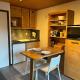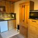 Apartmán má TV. Apartmán má také kuchyň s kompletním vybavením včetně lednice a mikrovlnné trouby, jídelní část a koupelnu.
