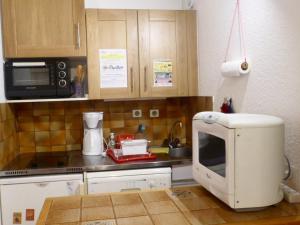 Apartmán v Studio confortable pour 4 pers, balcon, proche télésiège, parking privé, animaux acceptés - FR-1-263-379 nabízí terasu, TV, koupelnu a dobře vybavenou kuchyň s lednicí, myčkou a mikrovlnnou troubou.