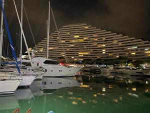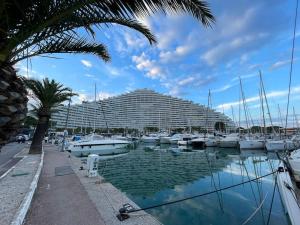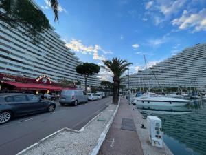 Studio cosy à 1mn de la plage se nachází v destinaci Villeneuve-Loubet a nabízí zahradu, soukromou pláž, bar a bezplatné Wi-Fi. Pláž Plage de la Batterie se nachází jen 300 metrů odtud. Allianz Riviera stadion se nachází 14 km od tohoto apartmánu a Cathédrale orthodoxe russe Saint-Nicolas 15 km.
