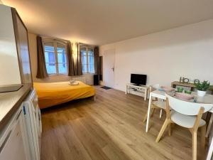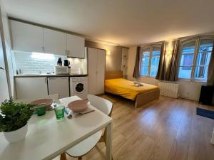 Das Apartment Studio cosy au cœur de Bourges ist mit 1 Schlafzimmer, einer Küche mit Kühlschrank und Mikrowelle, einer Waschmaschine sowie 1 Badezimmer mit Dusche und Haartrockner ausgestattet. In dieser Ferienwohnung werden Handtücher und Bettwäsche angeboten.