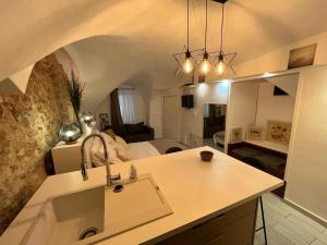 L'appartamento climatizzato di Studio de Charme au Suquet presenta 1 camera da letto, TV a schermo piatto e cucina con forno.