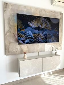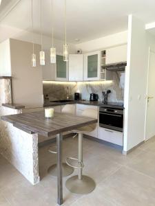 Apartament wyposażono w telewizor z płaskim ekranem. Do dyspozycji Gości w Studio de LUXE Portes de Monaco - Vue MER - Piscine - Wifi jest kuchnia z lodówką, zmywarką, piekarnikiem, ekspresem do kawy i czajnikiem.