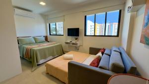Studio Design 302 - a 300m Pajuçara è climatizzato e comprende 1 camera da letto, soggiorno, cucina attrezzata e bagno con asciugacapelli. Studio Design 302 - a 300m Pajuçara fornisce lenzuola e asciugamani ai propri ospiti.