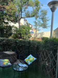 Pokoje: 1A kitchen fitted with a refrigerator, kitchenware and a microwave is available for cooking and storing food. The studio offers air conditioning, a washing machine, a terrace with garden views as well as a private bathroom boasting a bath or a shower. V této ubytovací jednotce se nachází 1 postel.