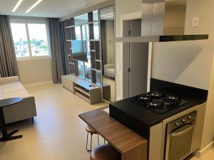 Klimatizovaný apartmán Studio em Floripa - Jardim Milano zahrnuje 1 ložnici, TV s plochou obrazovkou a kuchyň s lednicí a troubou. Apartmán Studio em Floripa - Jardim Milano poskytuje hostům ručníky a ložní prádlo.