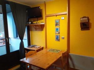 Questo appartamento dispone di pranzo, cucina con frigorifero e TV.