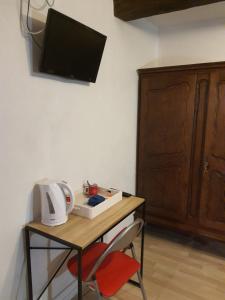 The apartment offers a wardrobe, an electric kettle, parquet floors, heating and a flat-screen TV. The unit offers 1 bed.