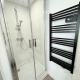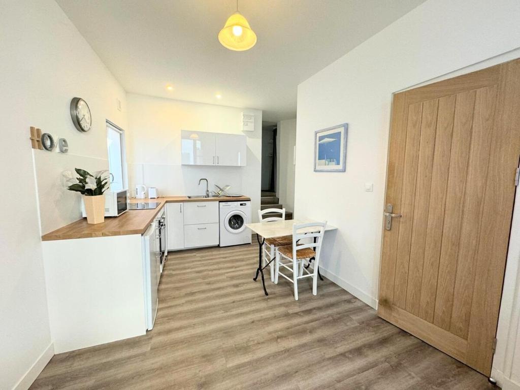 Diese Ferienwohnung ist versehen mit 1 Schlafzimmer, einer Küche mit einem Kühlschrank und einem Ofen, einem Flachbild-TV, einem Sitzbereich und 1 Badezimmer, ausgestattet mit einer Dusche.