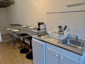 Klimatizovaný apartmán v Studio Hyper Centre au Calme, Confort & Équipé má 1 ložnici, kuchyň a TV s plochou obrazovkou.