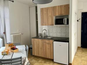 Diese Ferienwohnung hat eine Terrasse, ein Wohnzimmer und einen Flachbild-TV. Die Küche im Studio indépendant dans maison individuelle ist mit Kühlschrank, Ofen, Mikrowelle, Kaffeemaschine und Wasserkocher eingerichtet.